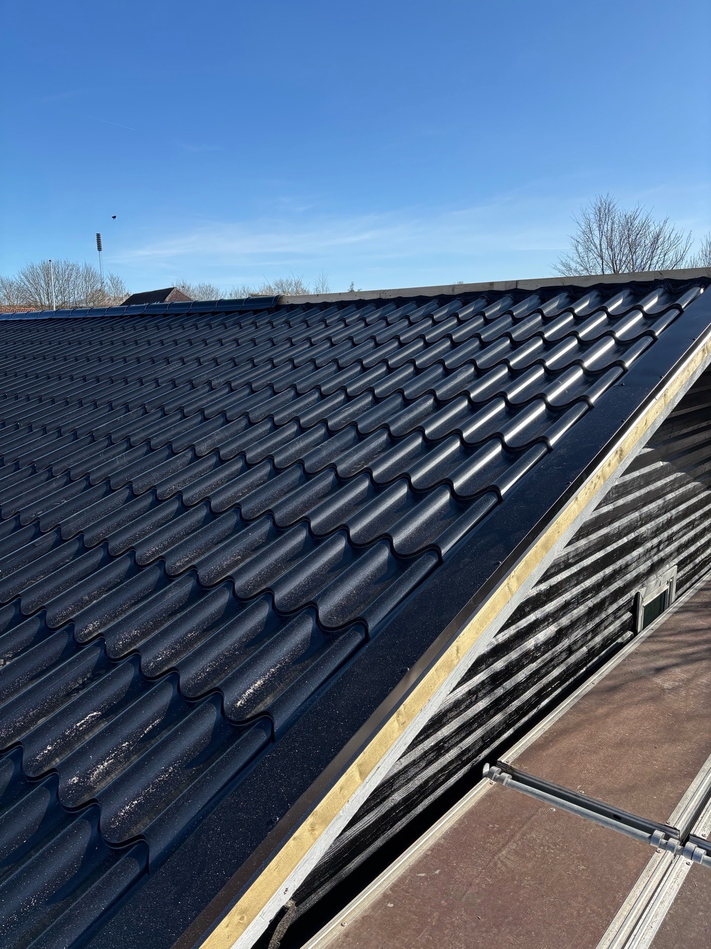 Ny tagkonstruktion på klubhus 29. januar 2026 Af kontakt@madsdueenggaard.dk Nedbrudt tag fjernet og nye spær, isolering, tagkrydsfiner, side inddækninger og diverse zink profiler gendannet.